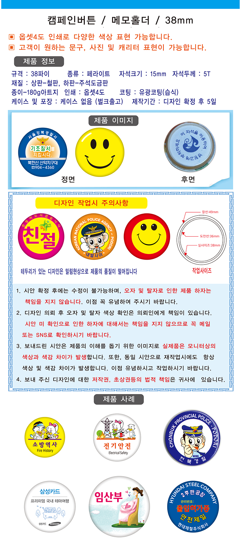 •1,000EA •기본수량 : 100EA •1,000개 이하 가격 별도 문의 •도안선:36mm / 칼선:49mm 제품 상세 설명 / - 재질 : 철판 / 옵셋인쇄 (유광코팅) - 케이스 및 포장 : 케이스 없음 (벌크출고) - 제작기간 : 디자인 확정 후 5일