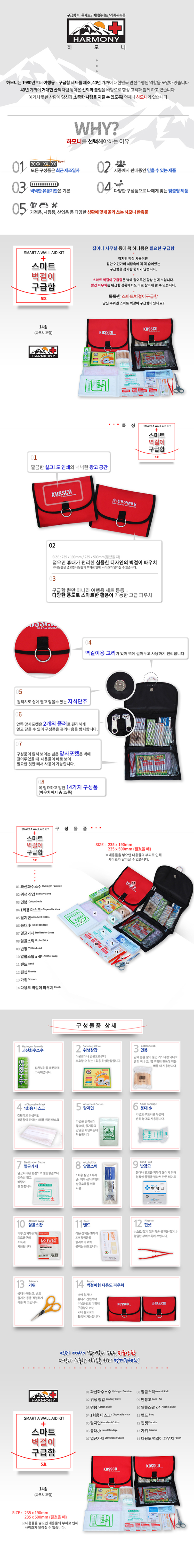 스마트 벽걸이 겸용 구급함 5호 (14종)