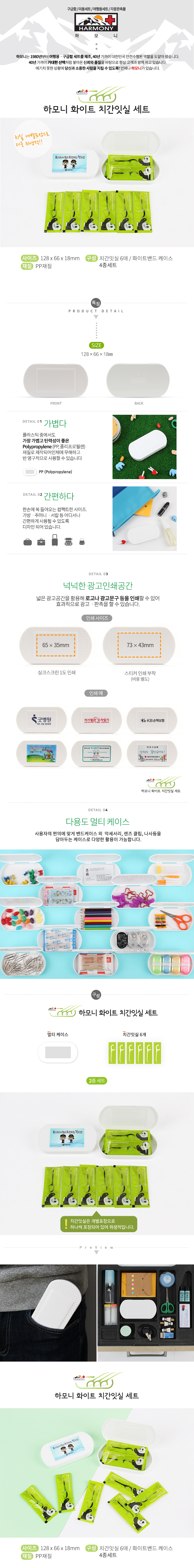 •수량 : 400EA •SIZE : 128x66x18 (mm) •스티커작업 별도 •치간잇실 6매 •1BOX : 400EA ※상품 내 모든 구성상품들은 수급상황에 따라 예고없이 변동 될 수 있습니다.