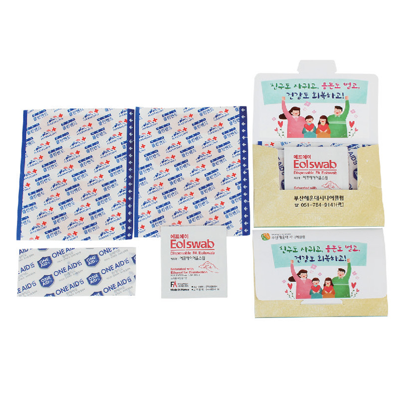 •혼합밴드 8P, 알콜스왑 1매, 방수밴드1매 •밴드 1P 추가 20원 •종이케이스 주문형 제작 ※상품 내 모든 구성상품들은 수급상황에 따라 예고없이 변동 될 수 있습니다.
