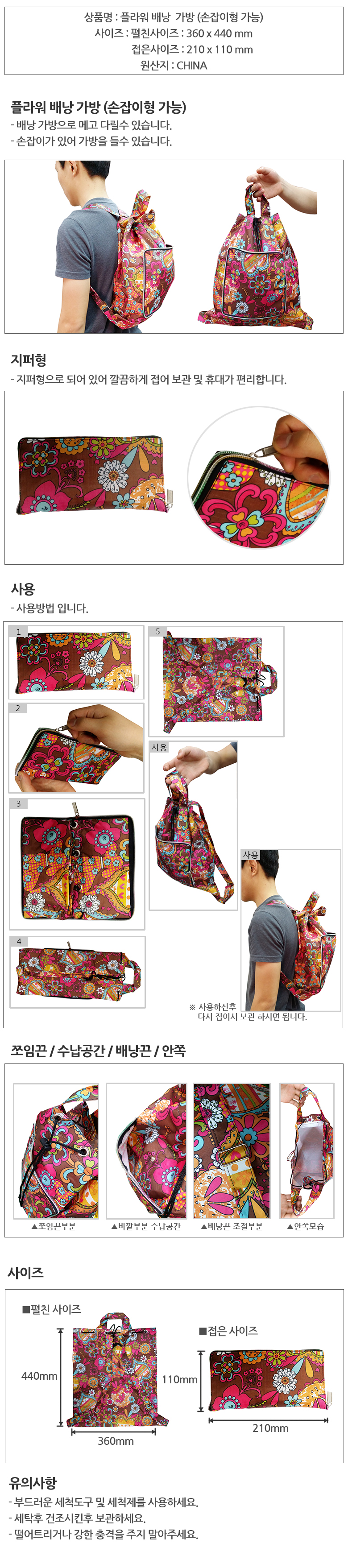 지퍼 플라워 배낭 다용도가방