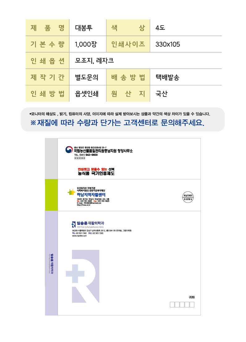 •사이즈 : 330x245 •기본 1,000장, 4도 ※옵셋4도 / 8도 ※이외 사이즈 별도문의